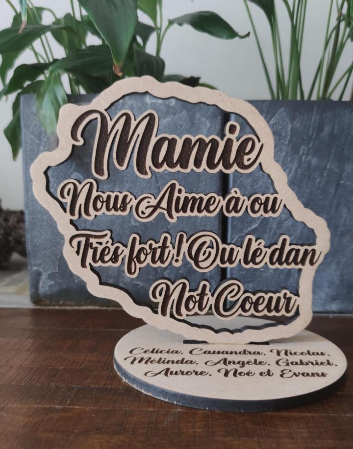Gravure sur bois auprès de la Boutique Les Folies des Magalies Le Tampon